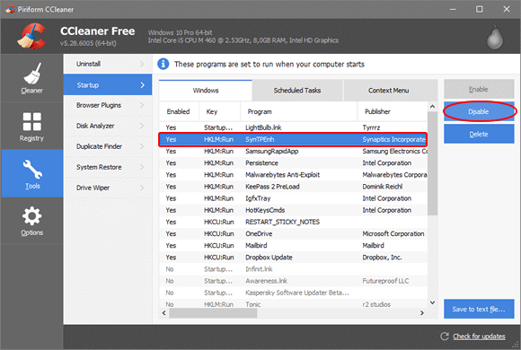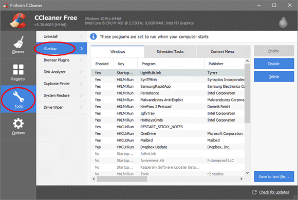 Uma das formas mais fáceis de limpar a inicialização do Windows é usando o programa gratuito CCleaner, que apesar de ser conhecido pela limpeza de arquivos, também permite limpar a inicialização do Windows.