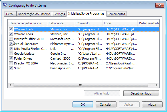 Limpar inicialização a partir do Gerenciador de Tarefas
