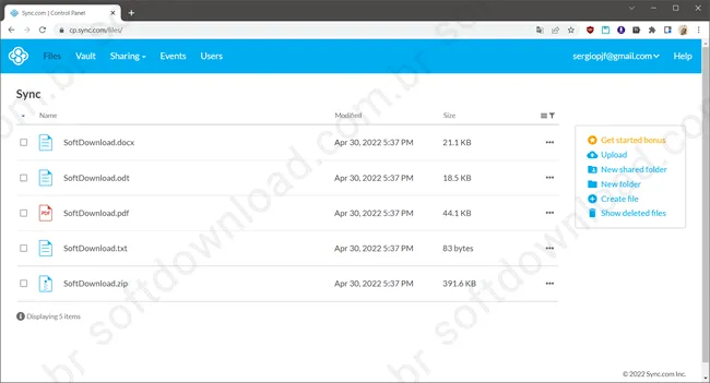 O Sync.com é outro serviço de armazenamento na nuvem que oferece um plano gratuito com 5GB de dados para você armazenar seus arquivos na nuvem. Assim como outros serviços de armazenamento na nuvem, ele possui aplicativos para Windows e macOS, assim como também para dispositivos móveis Android e iOS.