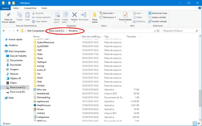 1. Abra o Windows Explorer e navegue até a pasta C:\Windows