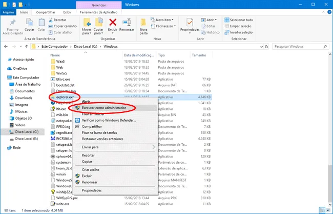 Para executar um programa como administrador, basta clicar com o botão direito nele e selecionar a opção Executar como administrador. Porém, o Windows Explorer (Explorador de arquivos) não possui essa opção.