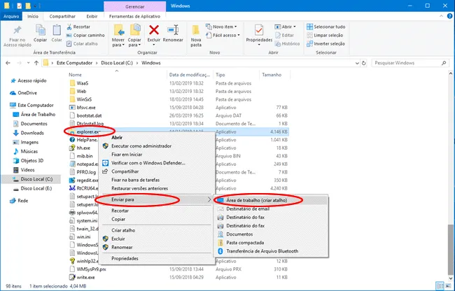 1. Clique com o botão direito no Explorer.exe e selecione “Enviar para > Área de trabalho > Criar atalho”