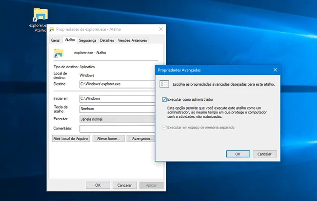 Dica: Opcionalmente você pode configurar uma tecla de atalho nas “Propriedades” do atalho para iniciar o Windows Explorer como administrador rapidamente utilizando apenas o teclado através da tecla de atalho.