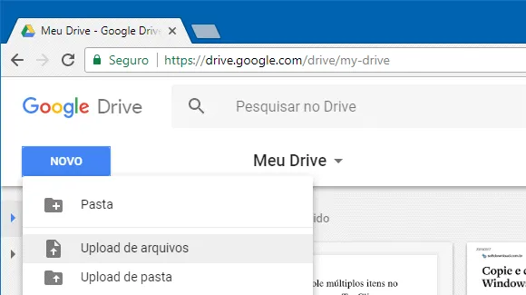 2. Clique em “Novo > Upload de arquivos” e selecione a imagem digitalizada em seu computador.