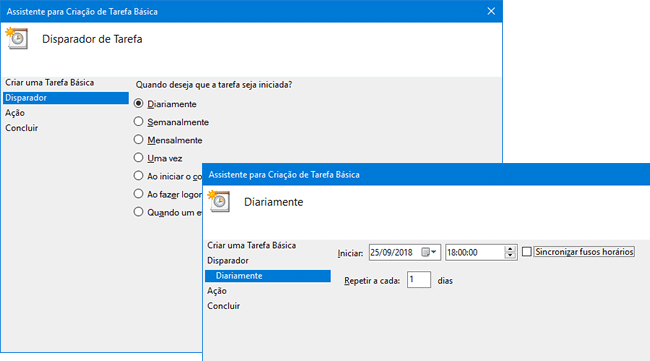 4. Em seguida, defina quando a tarefa deve ser executada e o horário.