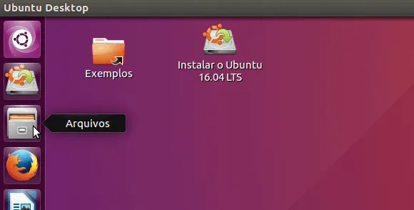 3. Ao carregar o Ubuntu, você verá na barra lateral diversos ícones. Clique no ícone de “gabinete” para abrir no Ubuntu um gerenciador de arquivos equivalente ao Explorer do Windows para você acessar disco rígido.