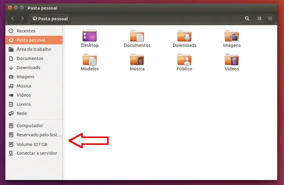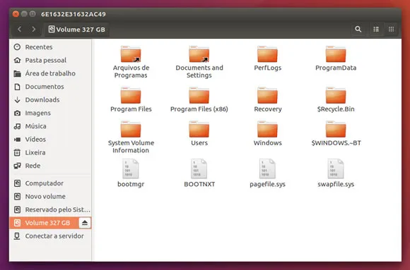 4. No Gerenciador de Arquivos do Ubuntu, você verá vários ícones de discos rígidos na barra lateral. Clique nos ícones para acessar as partições do disco rígido e descobrir em qual delas o Windows está instalado.