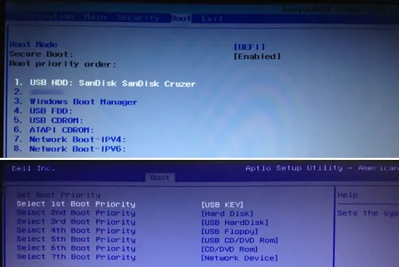 A opção para trocar a ordem de inicialização geralmente fica na guia “Boot”. Você deve usar as teclas + e – ou F5 e F6 para definir a ordem de inicialização. Quando terminar, pressione F10 para salvar as alterações.