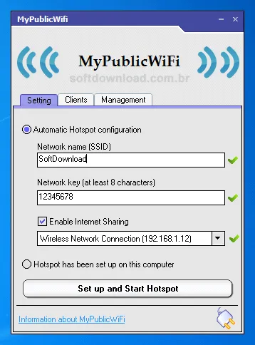 MyPublicWiFi é um programa gratuito para Windows 7 que transforma o seu computador em um ponto de acesso sem fio para você compartilhar a sua conexão de internet com outros computadores, telefones, etc.