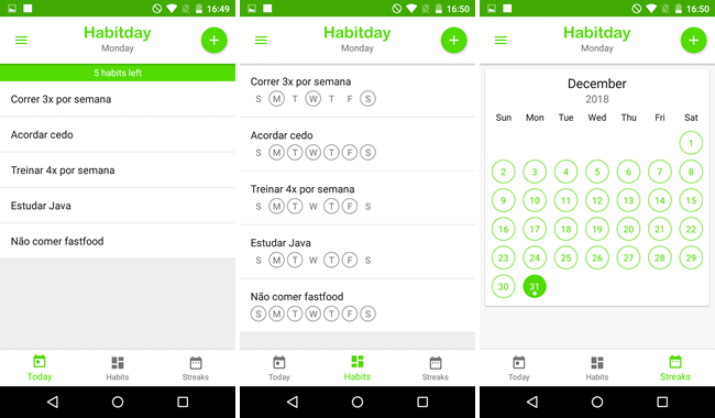 Habitday é um aplicativo que lhe ajuda a criar novos hábitos concentrando-se apenas nas tarefas que você precisa fazer no dia. Com isso, você não fica desmotivado com tudo que precisa fazer ao longo da semana.