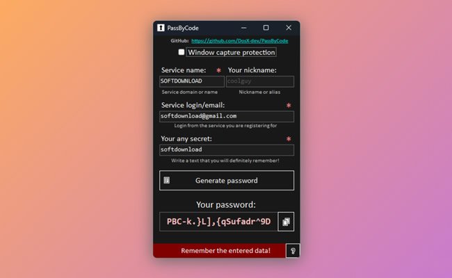 O PassByCode é um programa que permite criar e regenerar senhas usando “frases secretas”. Diferente dos gerenciadores de senhas tradicionais como o Bitwarden, que armazena senhas, ele usa uma combinação de dados fornecidos pelo usuário para criar senhas exclusivas que podem ser recriadas sempre que necessário.