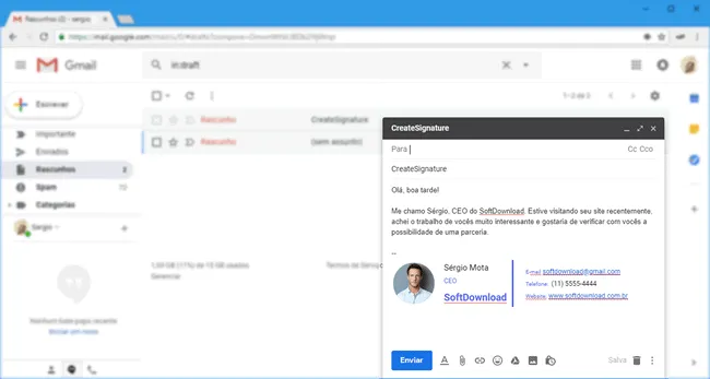 Criar uma assinatura de email usando o CreateSignature é muito simples. Em apenas alguns minutos você pode criar uma assinatura de email com aparência profissional para utilizar nas mensagens que você envia.