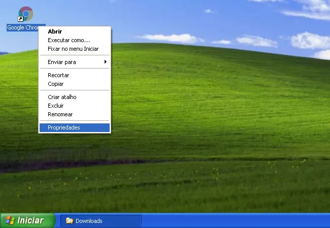 3. Clique com o botão direito no atalho do Chrome na área de trabalho e selecione “Propriedades“.