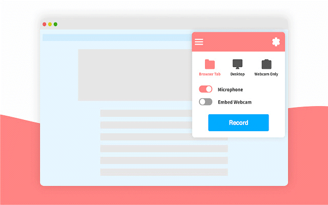 Ele oferece opção para você gravar uma guia aberta do navegador, gravar em tela cheia ou gravar apenas a webcam. Você também pode ativar o acesso ao microfone e a webcam para adicioná-los em sua gravação.
