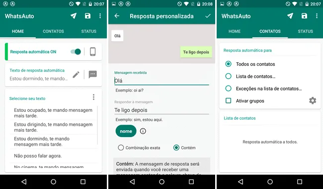 No geral, WhatsAuto é uma ótima opção para responder automaticamente mensagens no WhatsApp. Nas configurações do aplicativo você também pode definir o horário para ativar/desativar a resposta automática.