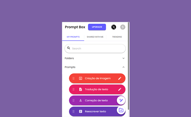 - Organize os prompts com pastas, cores e ícones.