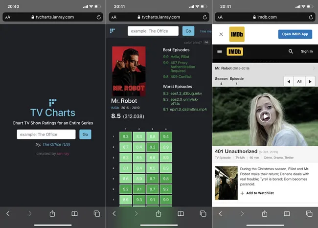 Além disso, o site exibe a pontuação geral da série junto com o número total de votos recebidos e também mostra os três episódios com a melhor pontuação e os três piores episódios de todas as temporadas série.